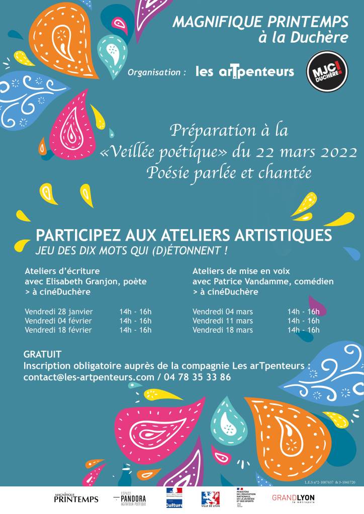 Ces ateliers d’écriture et de mise en voix autour du jeu des dix mots « dis-moi dix mots qui (d)étonnent » se dérouleront dans nos locaux à CinéDuchère, Lyon 9e.