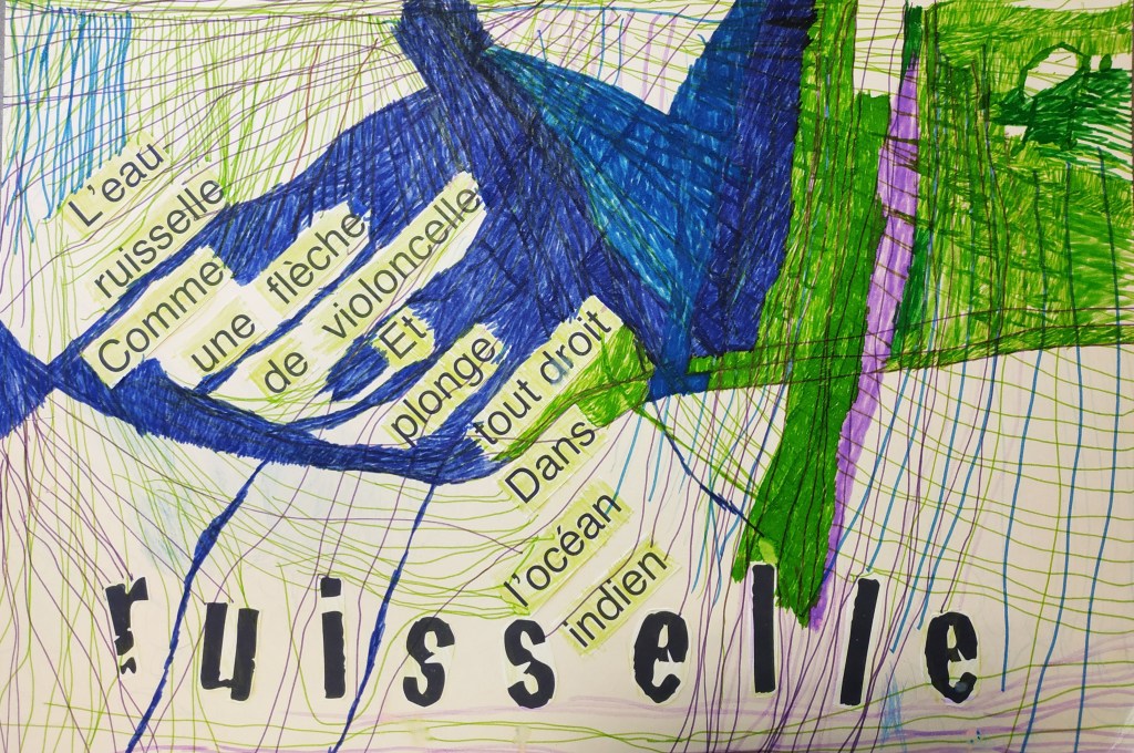 Les usagers d’ODYNEO se sont inspirés des dix mots « au fil de l’eau », ont écrit leurs textes avec la poétesse Elisabeth Granjon, puis finalisé leurs poèmes-affiches avec Annie Lebard, plasticienne.
