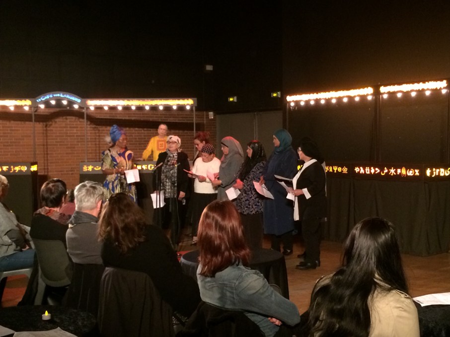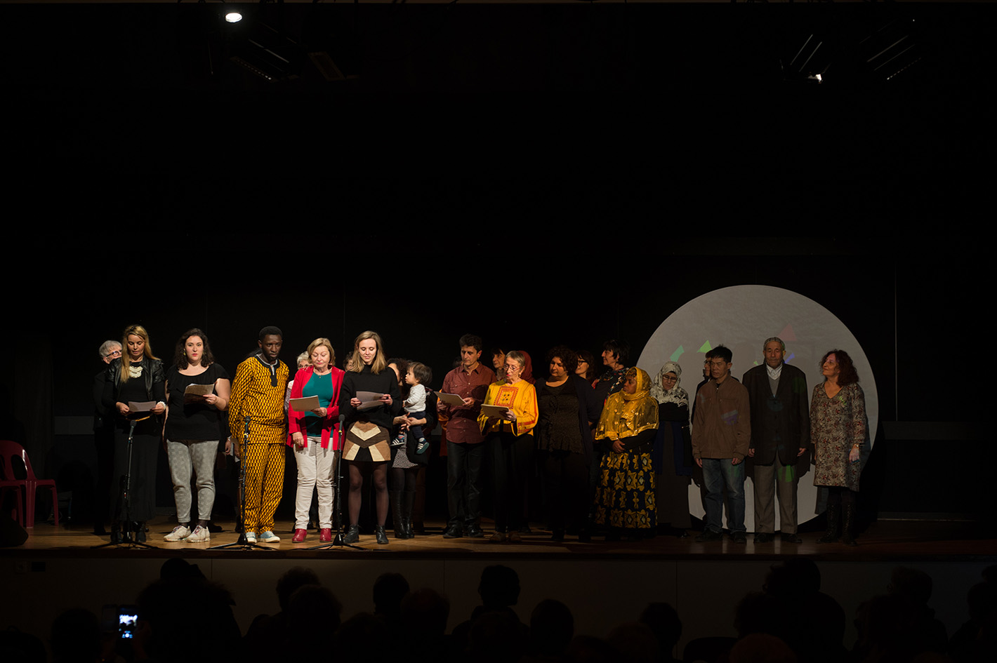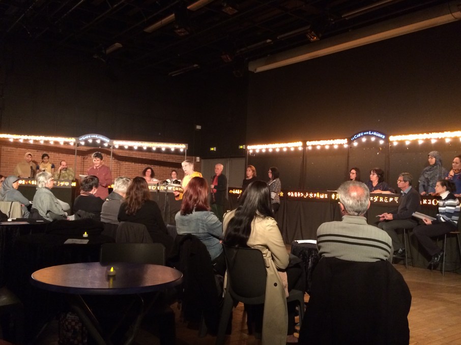 * Lecture multilingue participative autour de poèmes, chansons dans les langues parlées par les habitants participants et accompagnés d’artistes de la compagnie.
