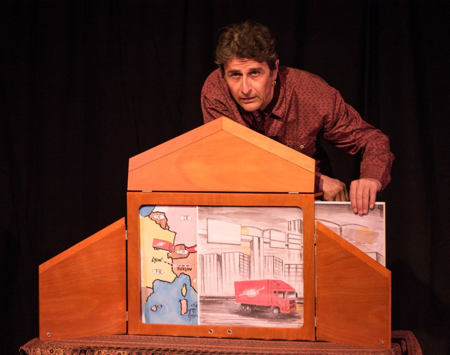 Un spectacle multilingue musical et théâtre de papier (kamishibaï) qui se prolonge avec une scène ouverte de berceuses et comptines en toutes langues transmises par parents et jeunes enfants réunis. Un enfant part en voyage à travers l’Europe avec son oncle routier qui est passionné de langues. L’oncle a rencontré des gens de tous les pays du monde et il chante dans beaucoup de langues.