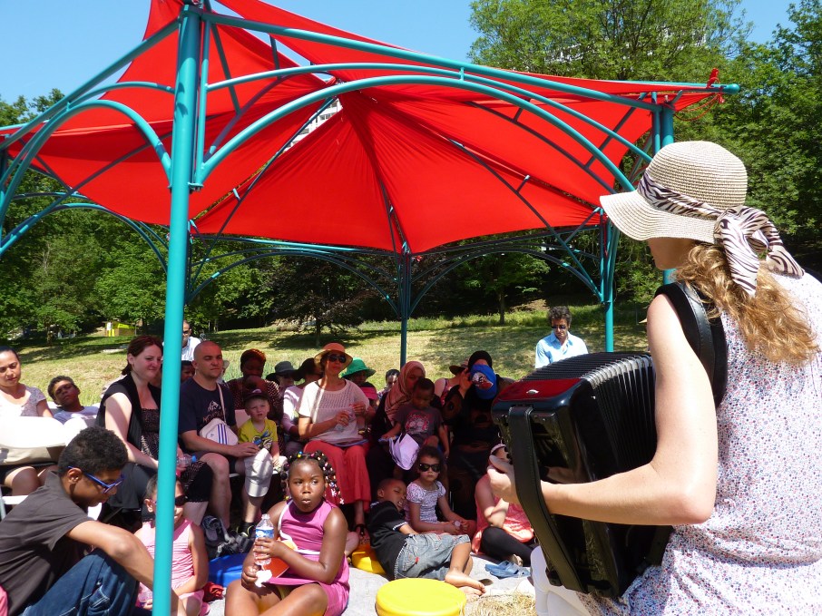 Un dispositif de plein air pour petites formes pour faire écrin à un spectacle multilingue participatif : «poésie parlée et chantée en toutes langues».