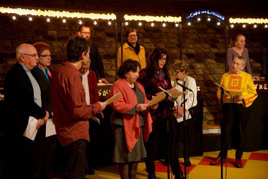 Un spectacle multilingue à dimension participative qui valorise les richesses linguistiques du territoire dans le décor du café des langues.