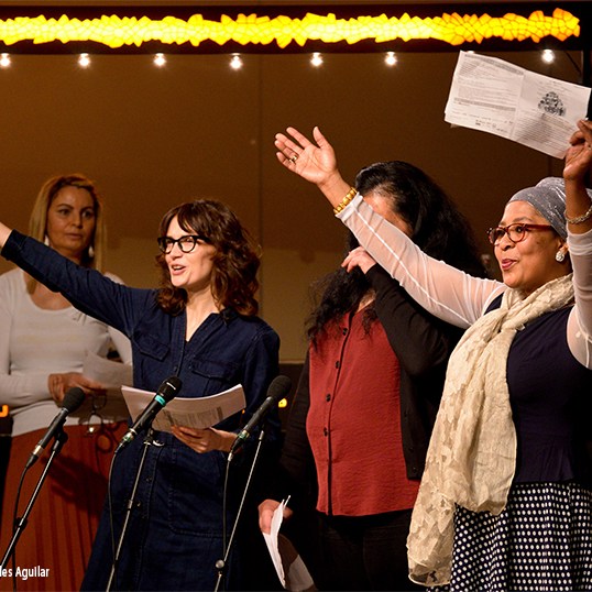 Depuis 2015 Les arTpenteurs développe des formes de spectacles multilingues à dimension participative, outils pouvant être exploités sur tous les territoires lors d’actions culturelles menées avec les acteurs locaux. (« La clé des langues », « Bercés par le monde », « Le café des langues »)
