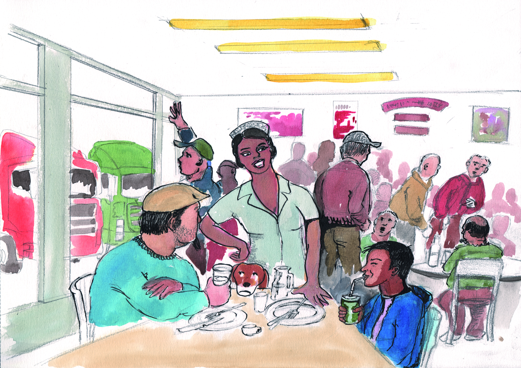 «On a traversé l’Italie… puis l’Autriche… et le soir avec Ninni -le chien- on est allé casser la croûte chez Ivana, en Moravie. Ivana c’est l’une des nombreuses cantines de tonton. Des bises et des poignées de mains à toutes les tables (…)»