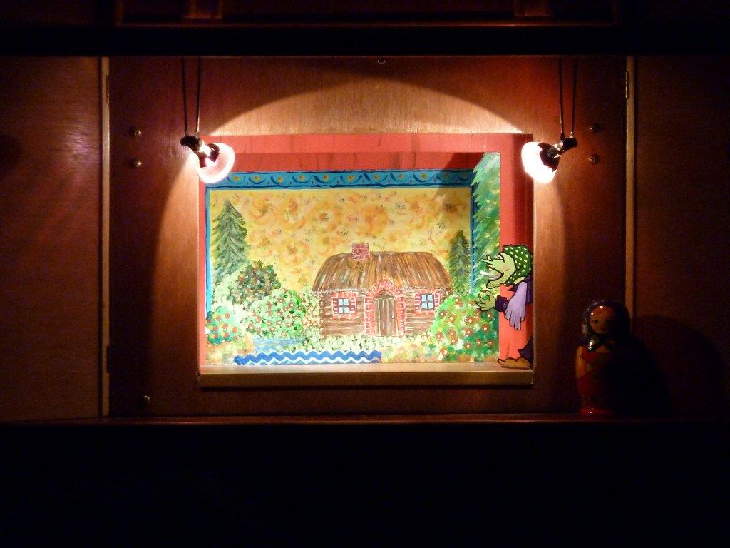 Baba – Yaga / théâtre de papierÂne, pinson, grenouille, chat, souris, chien, oiseau, dindon, escargots, mouton, baleine, autruche, girafes, antilopes, renard, lièvre, cheval, lion…