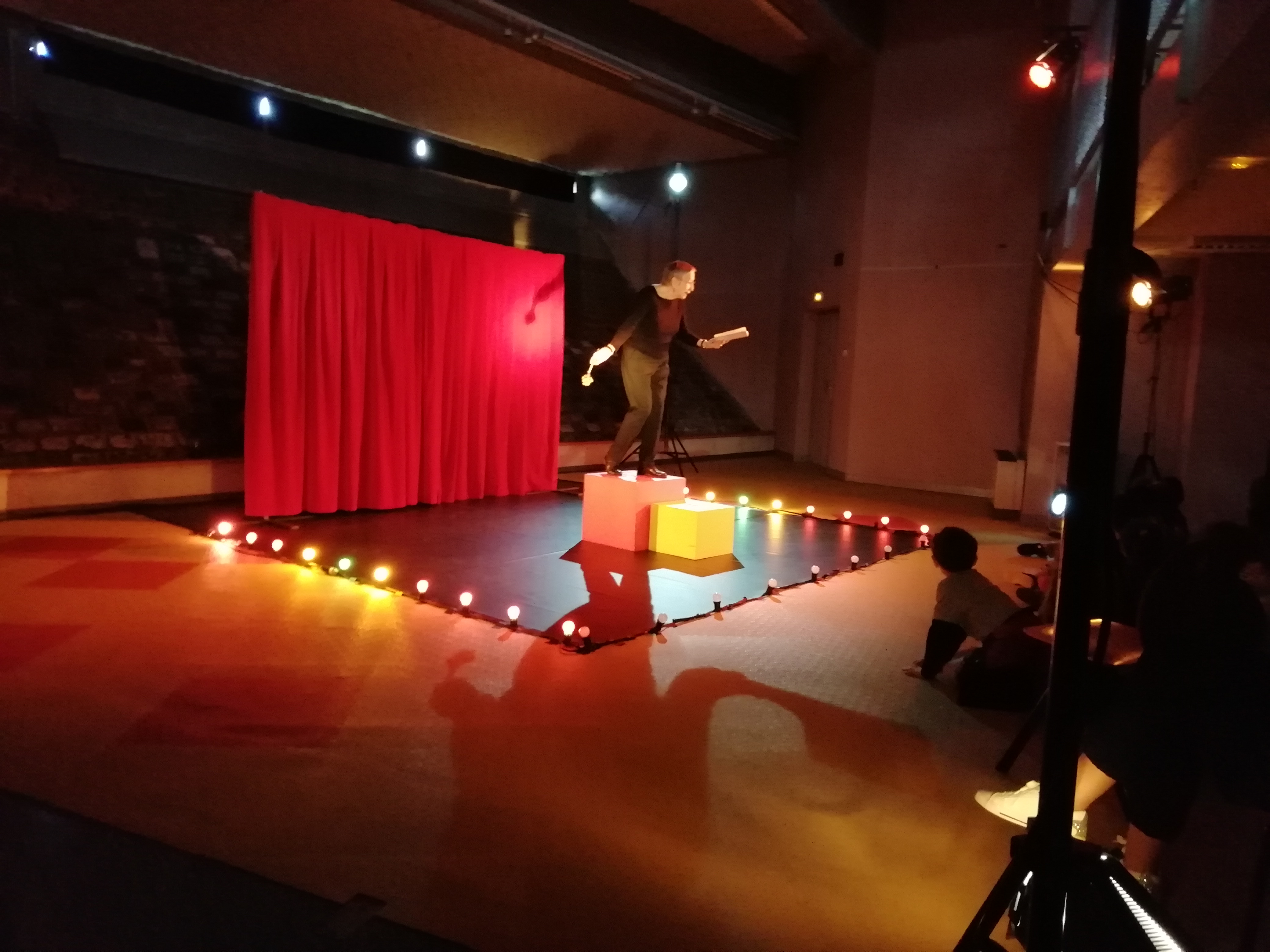 Construction du castelet, lumières : Ludovic Micoud‐Terraud
