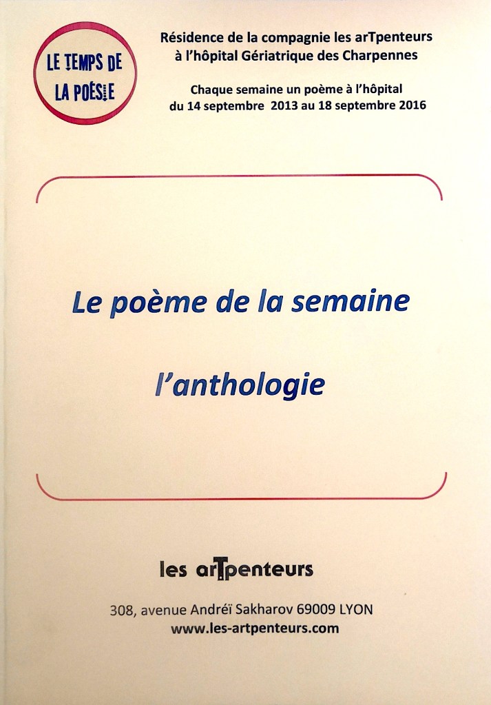 Pendant trois années, « le poème de la semaine » a été systématiquement affiché dans 15 lieux de l’hôpital gériatrique des Charpennes : ascenseurs, services, lieux de passage des résidents, familles et personnels.