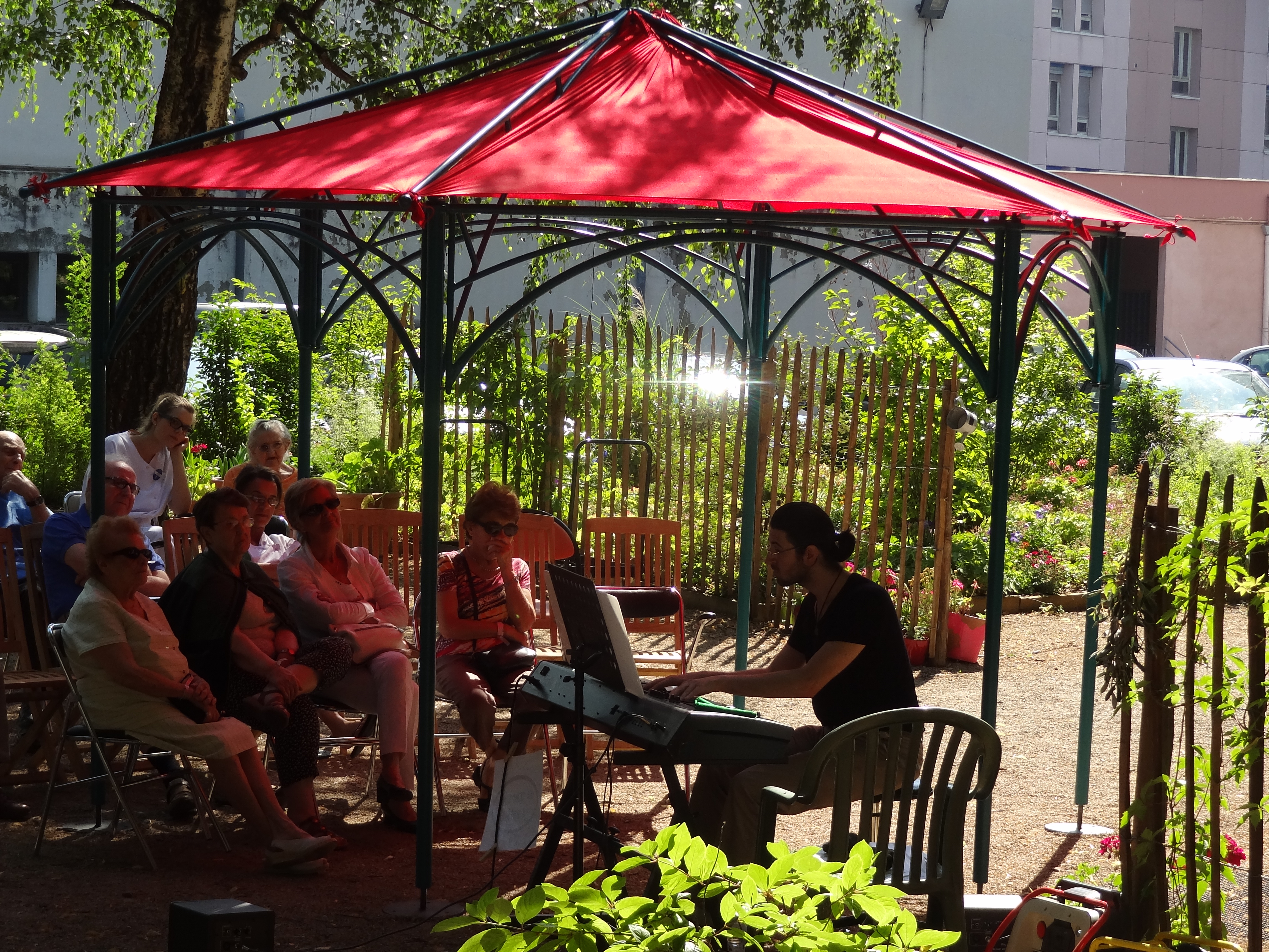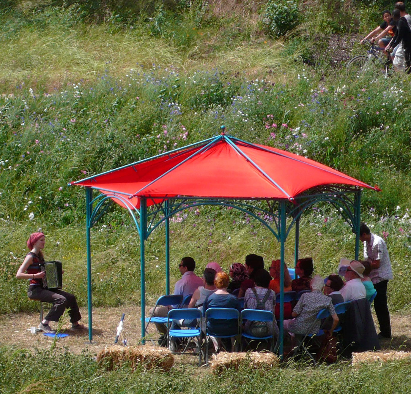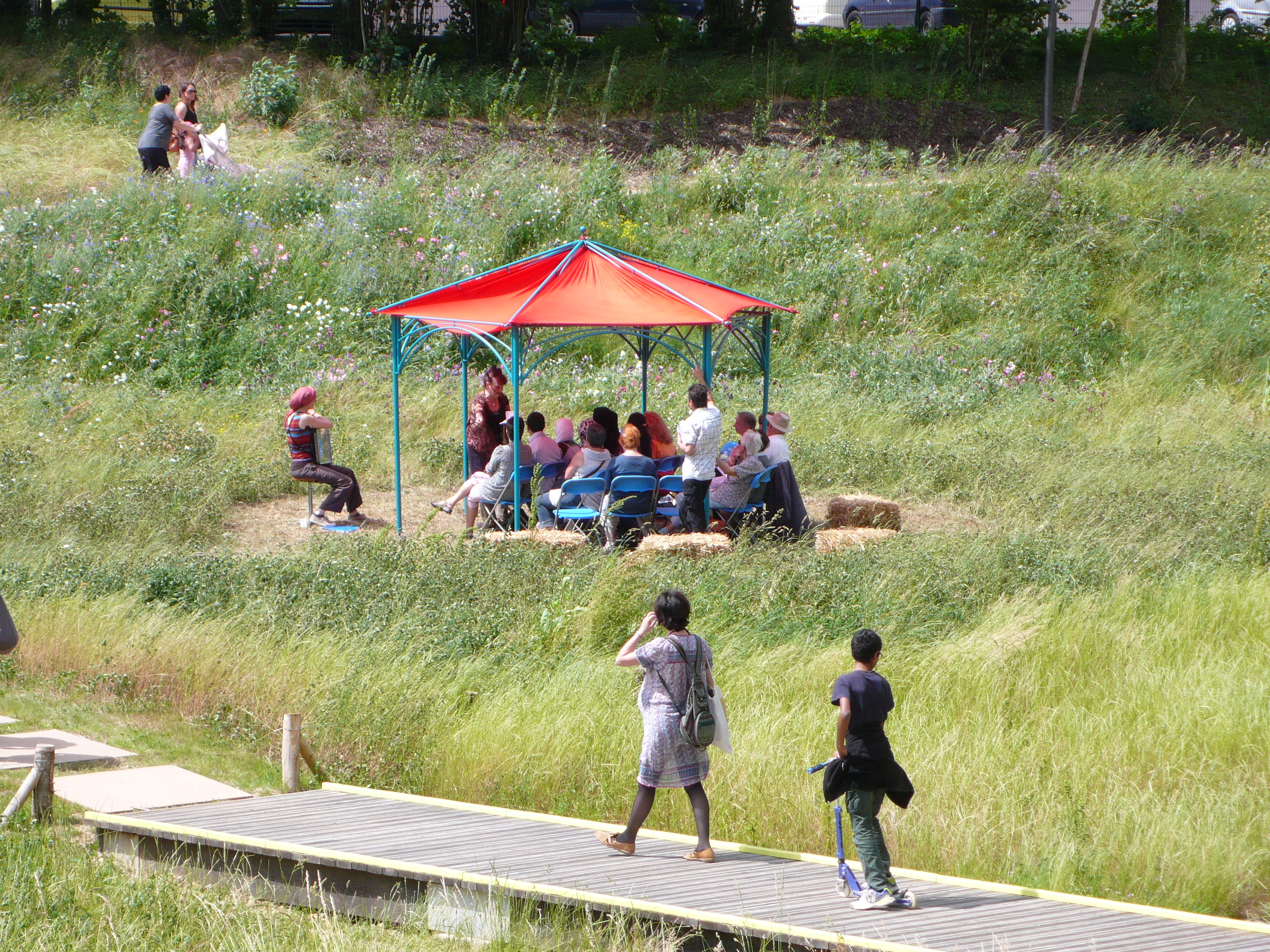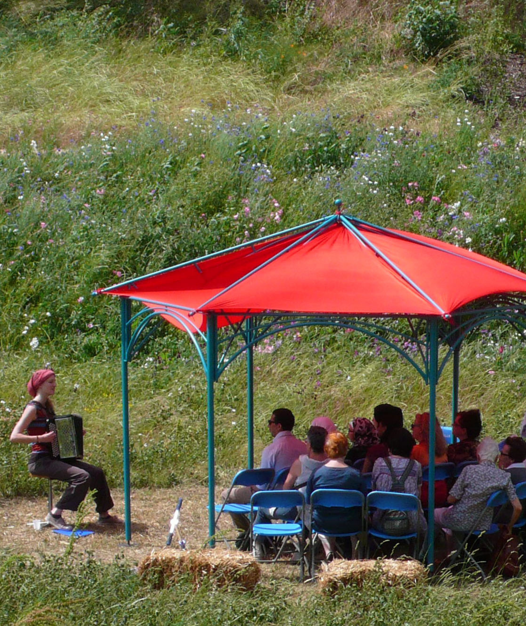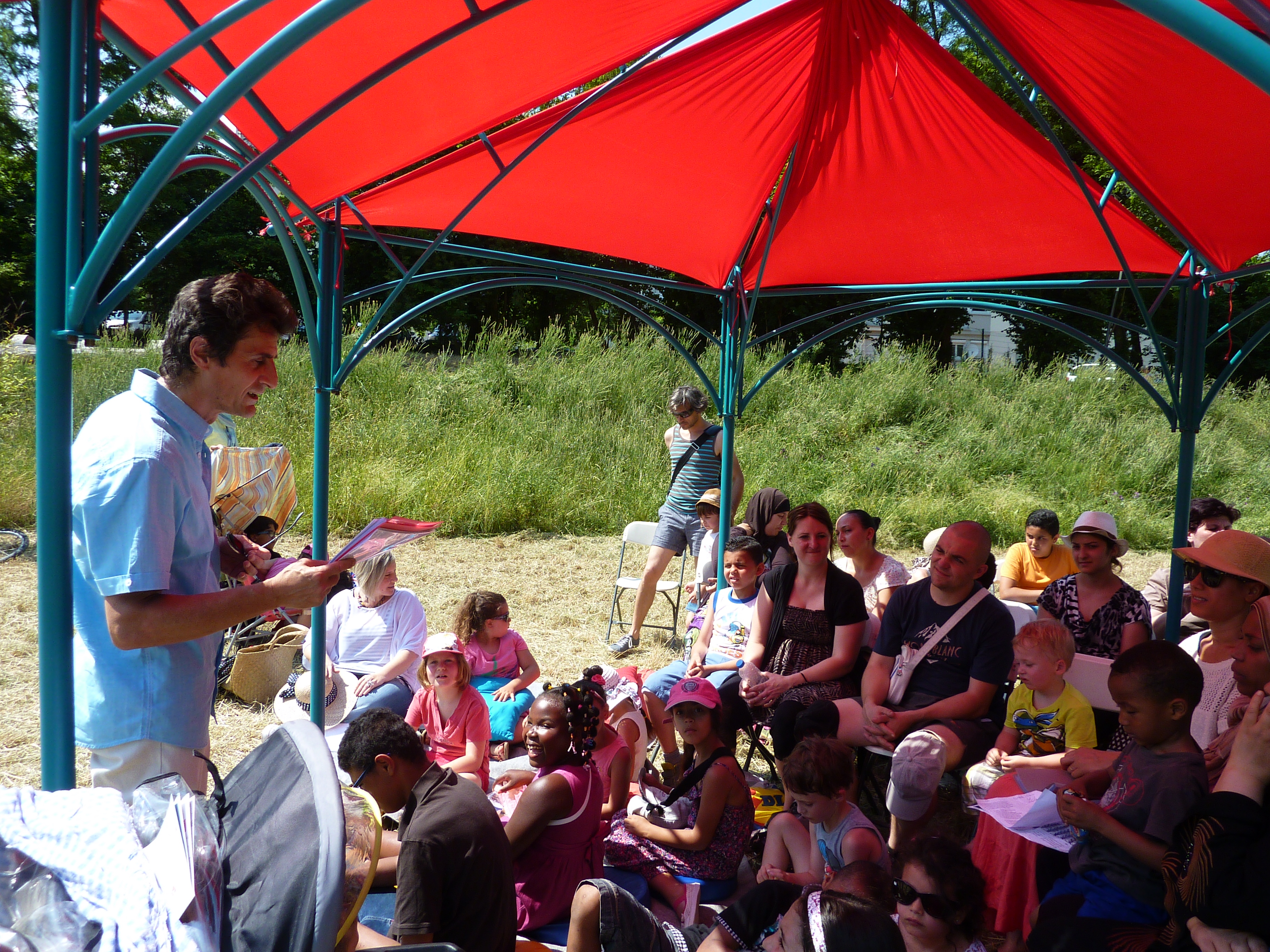 Un dispositif de plein air pour petites formes pour faire écrin à un spectacle multilingue participatif : «poésie parlée et chantée en toutes langues».
